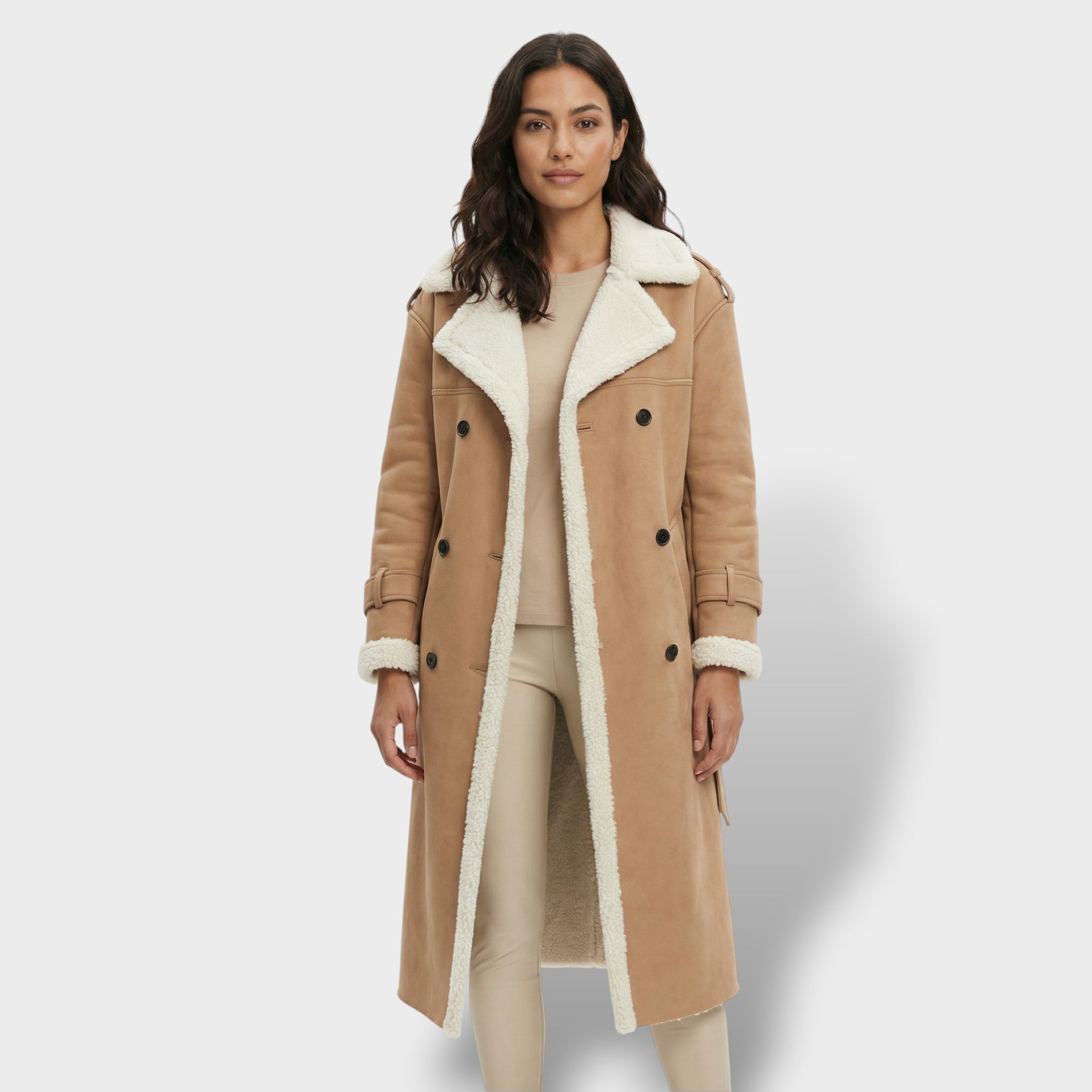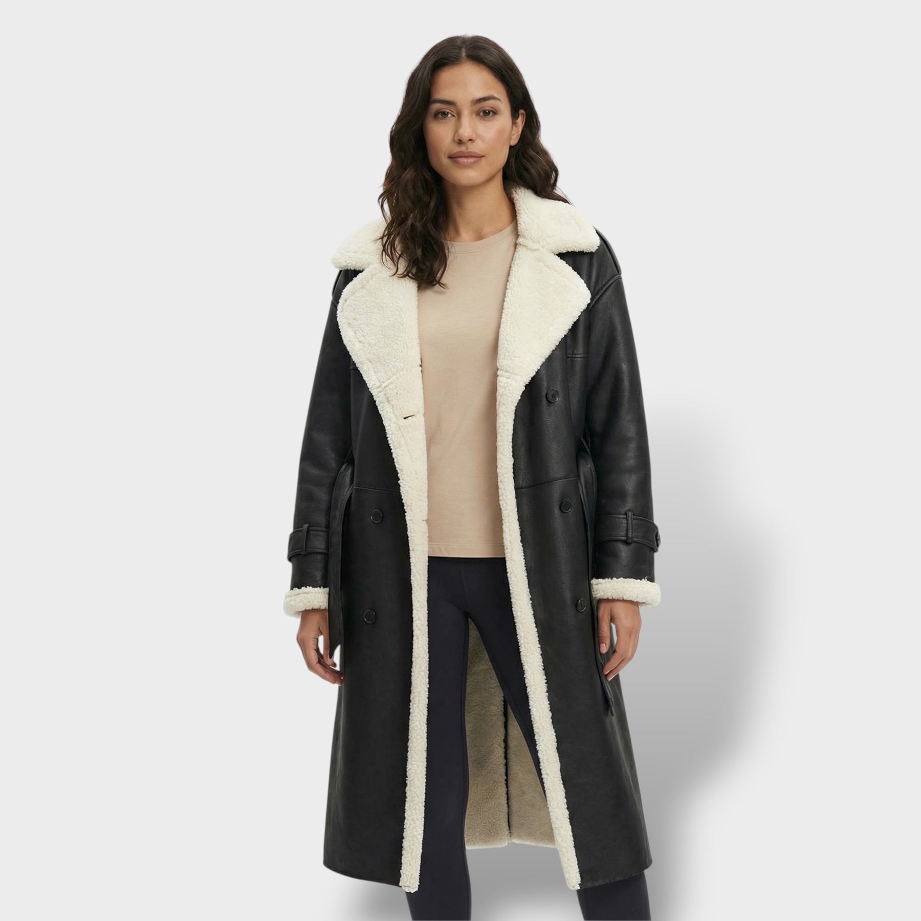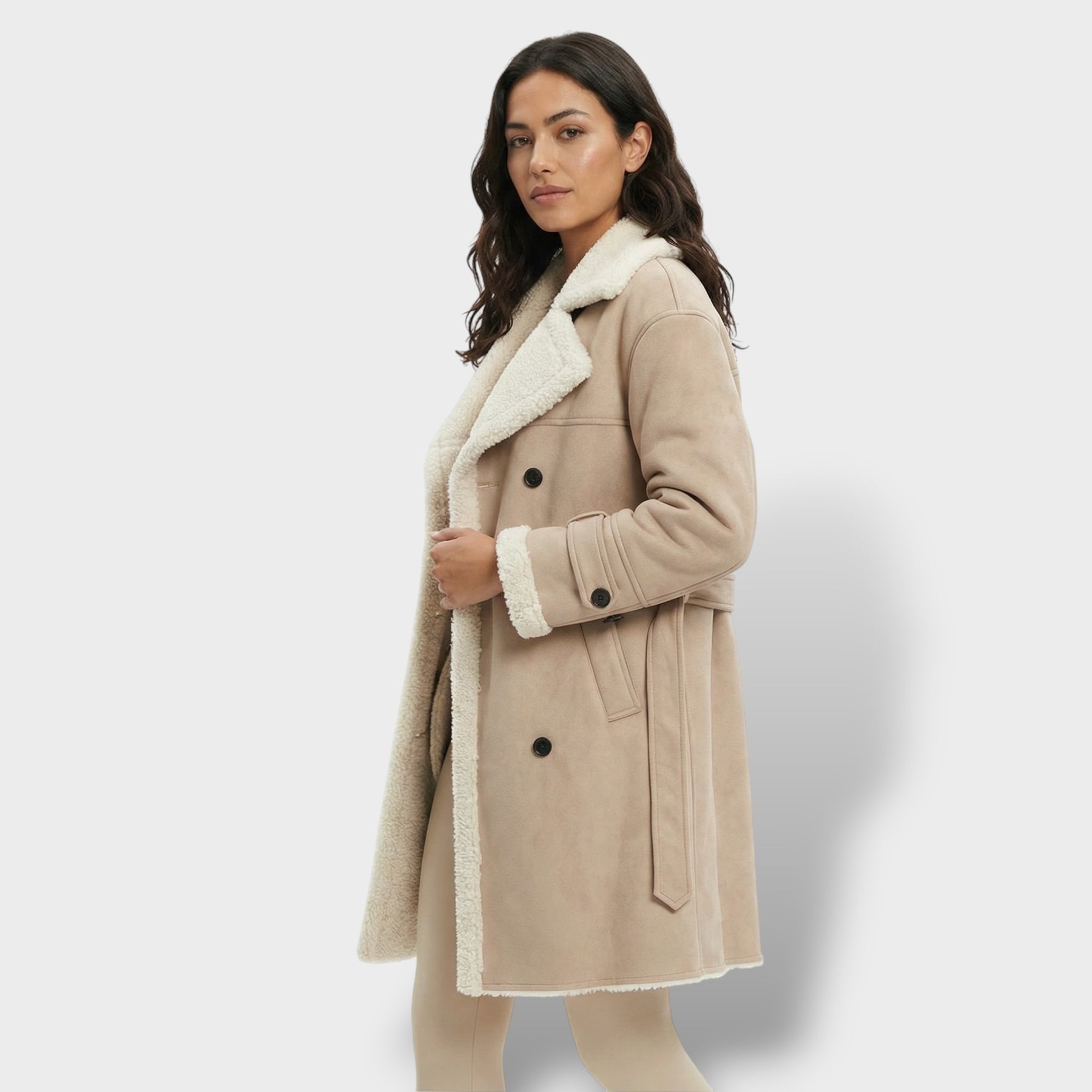 Este abrigo largo está pensado para acompañarte con estilo en los días fríos, con una silueta clásica que cae con elegancia y combina fácilmente. El cuello teddy aporta un toque acogedor y actual, mientras el forro polar interior suma una sensación suave y cálida durante todo el día. Una pieza versátil para el invierno en España, ideal tanto para looks casuales como para conjuntos más arreglados.