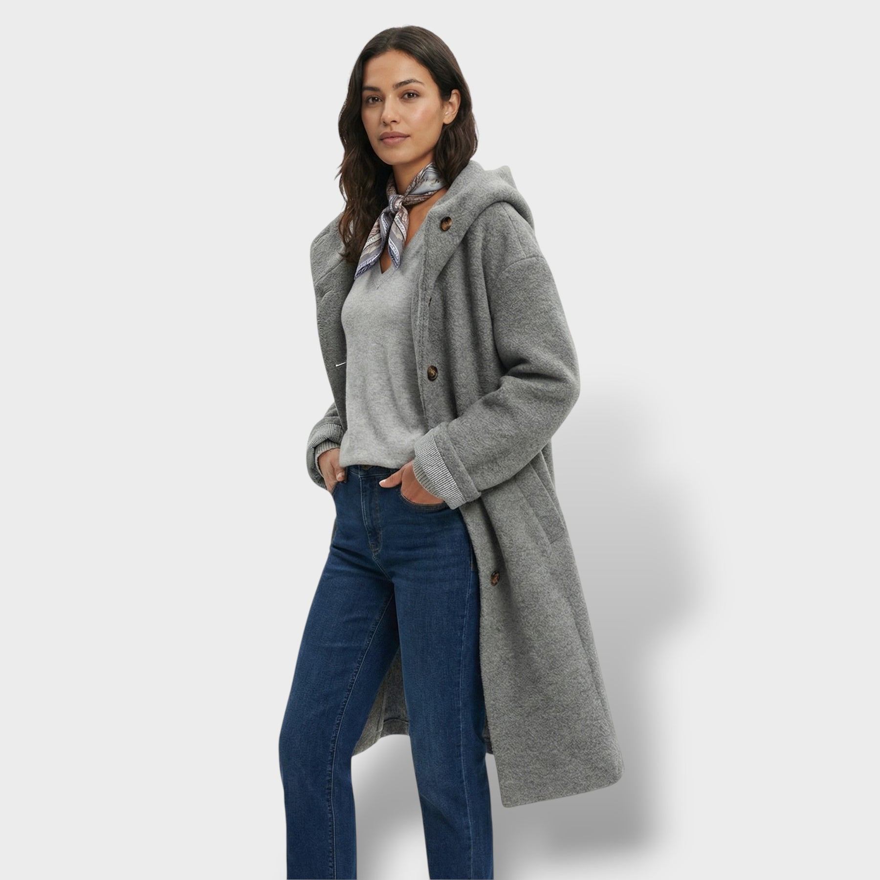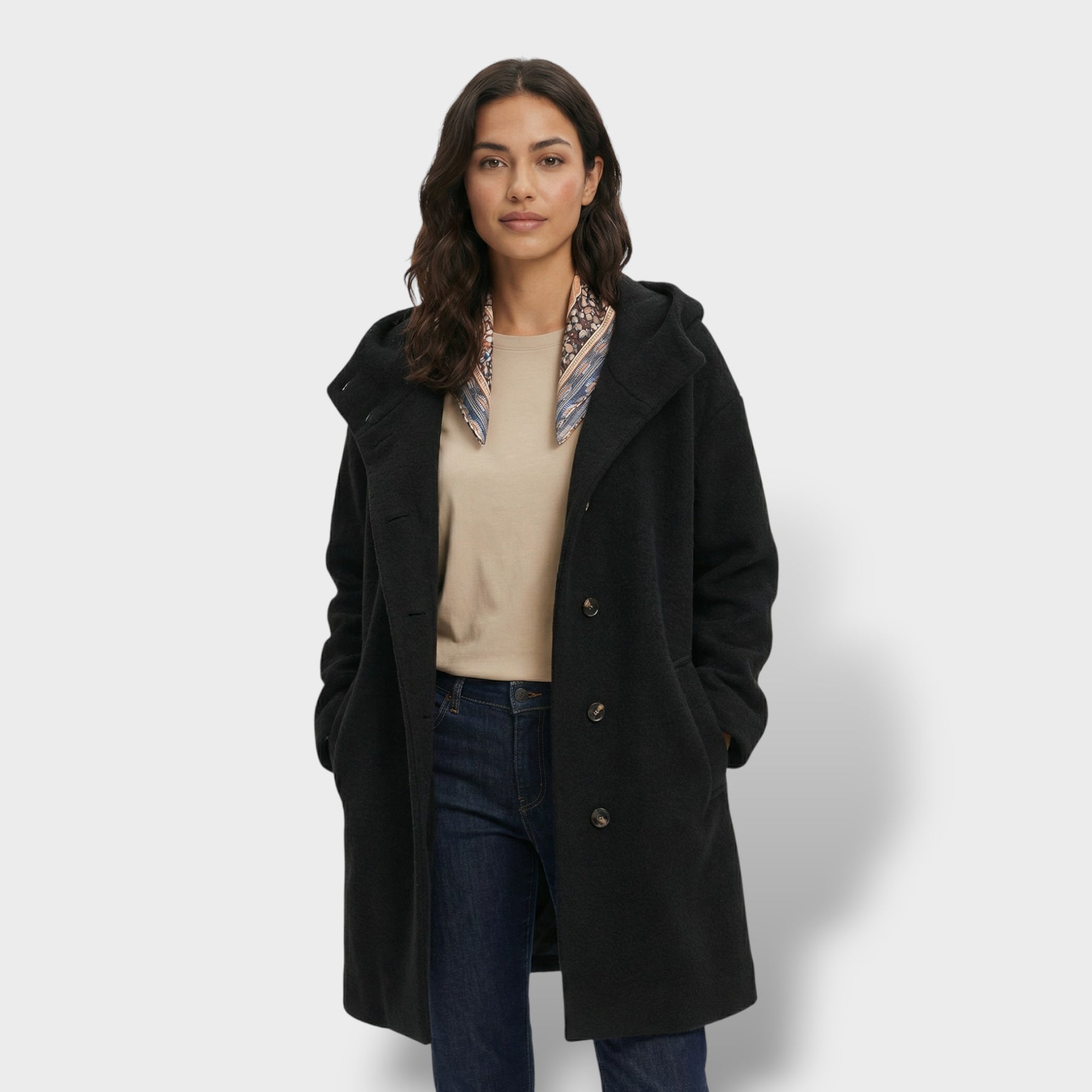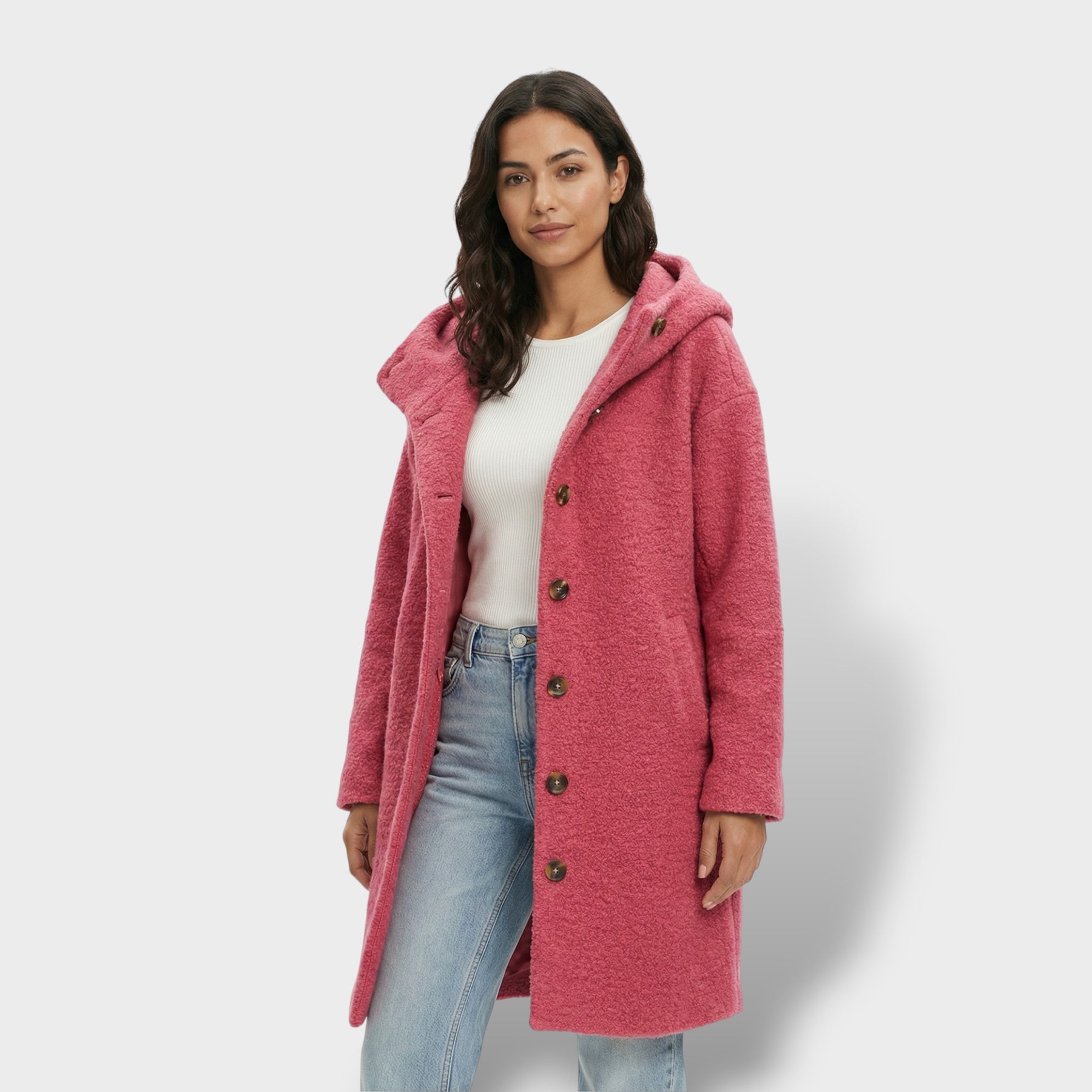 Este abrigo largo combina elegancia y practicidad en una pieza imprescindible para los días fríos. Su corte oversize crea una silueta moderna y cómoda, mientras la mezcla con lana aporta una sensación cálida y agradable. La capucha suma un extra de abrigo sin perder un acabado pulido, y los botones grandes completan el diseño con un toque sofisticado y funcional.
