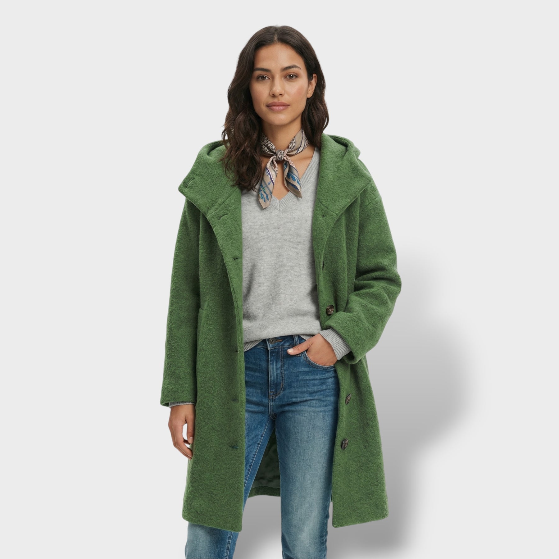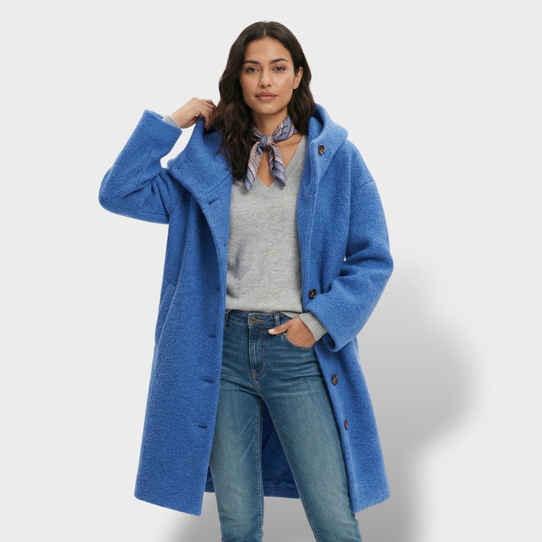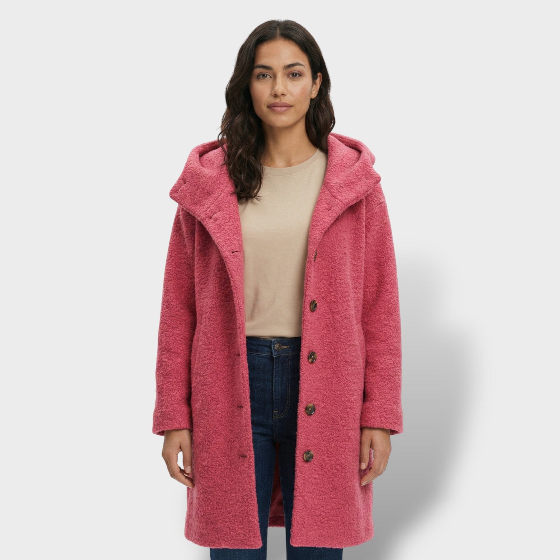 Este abrigo largo combina elegancia y practicidad en una pieza imprescindible para los días fríos. Su corte oversize crea una silueta moderna y cómoda, mientras la mezcla con lana aporta una sensación cálida y agradable. La capucha suma un extra de abrigo sin perder un acabado pulido, y los botones grandes completan el diseño con un toque sofisticado y funcional.