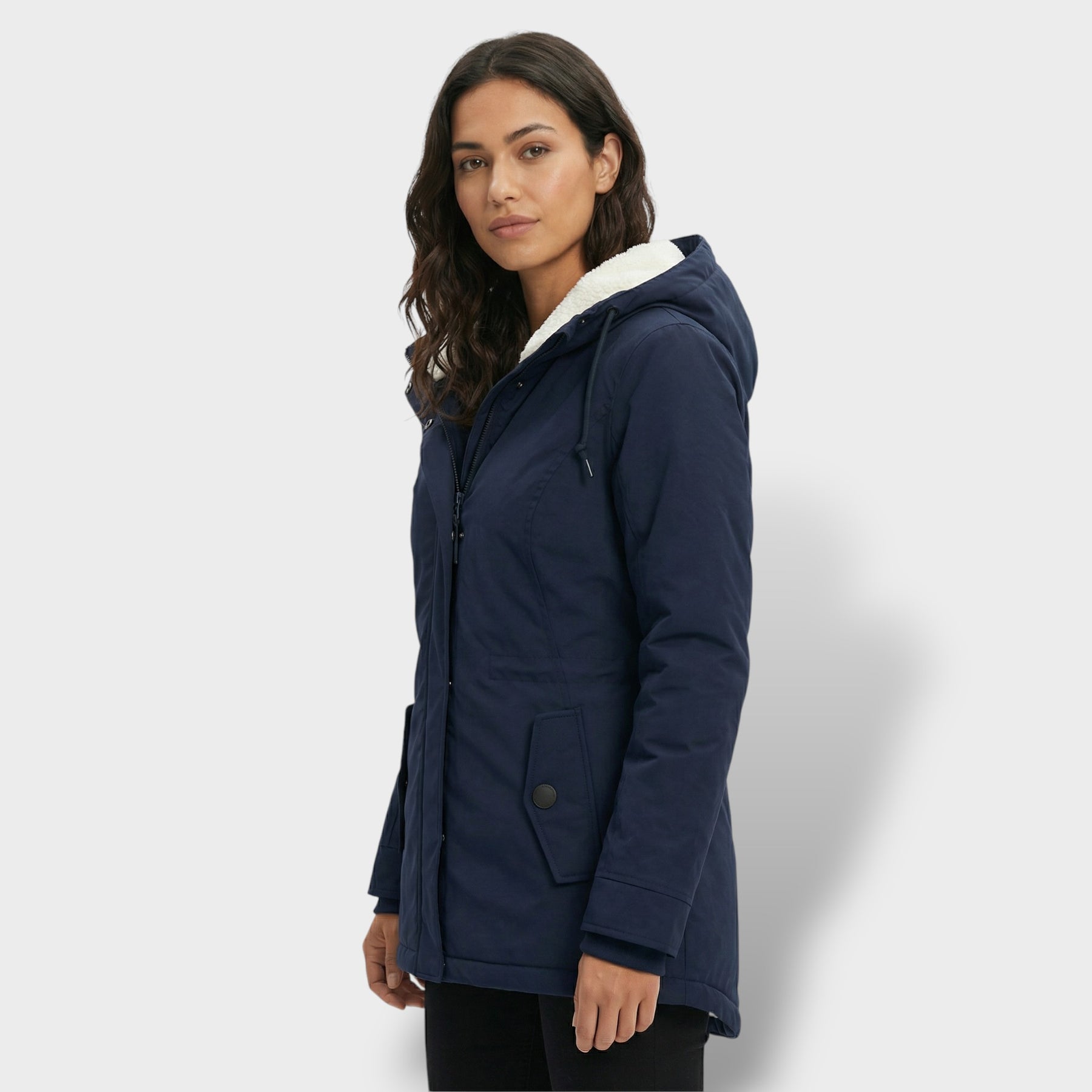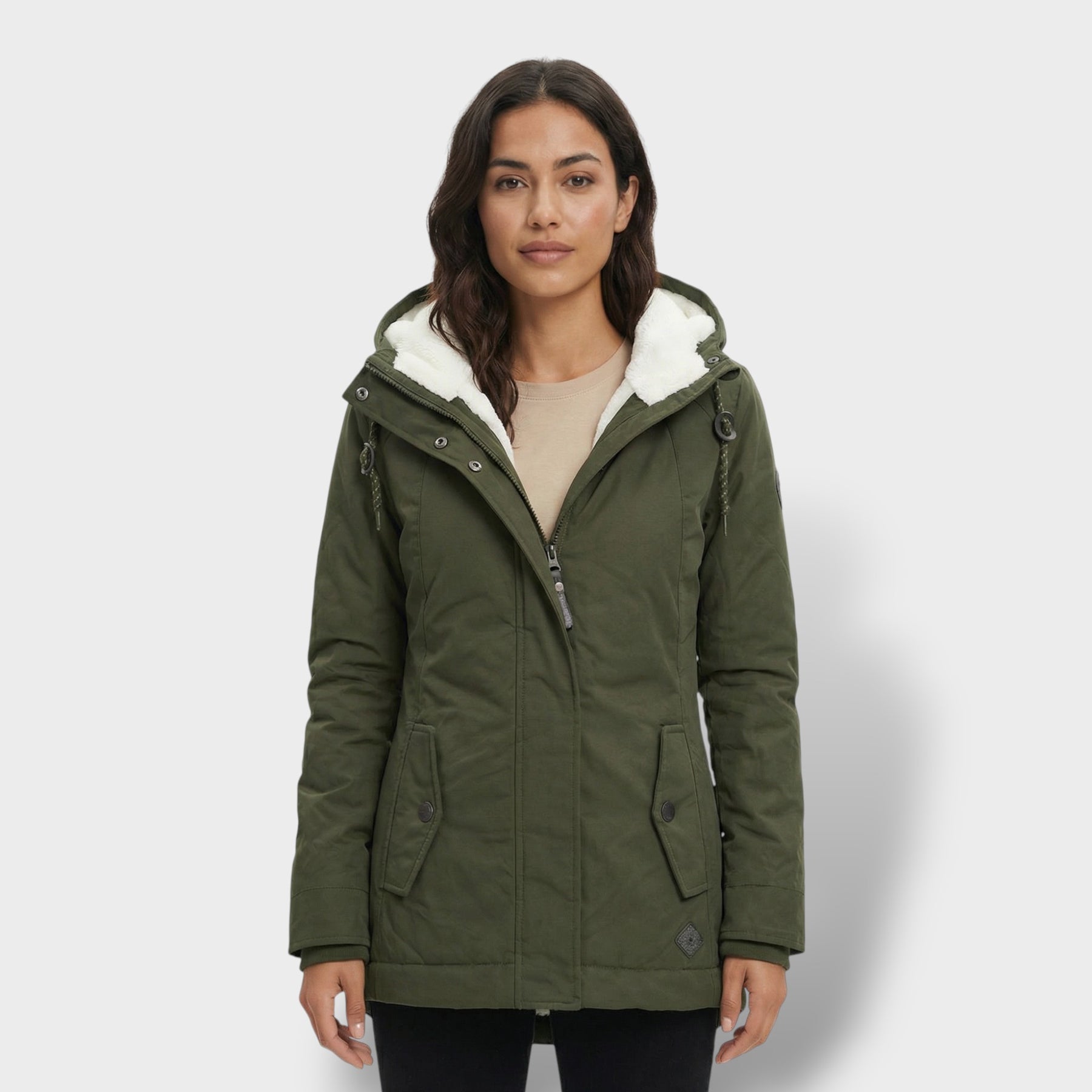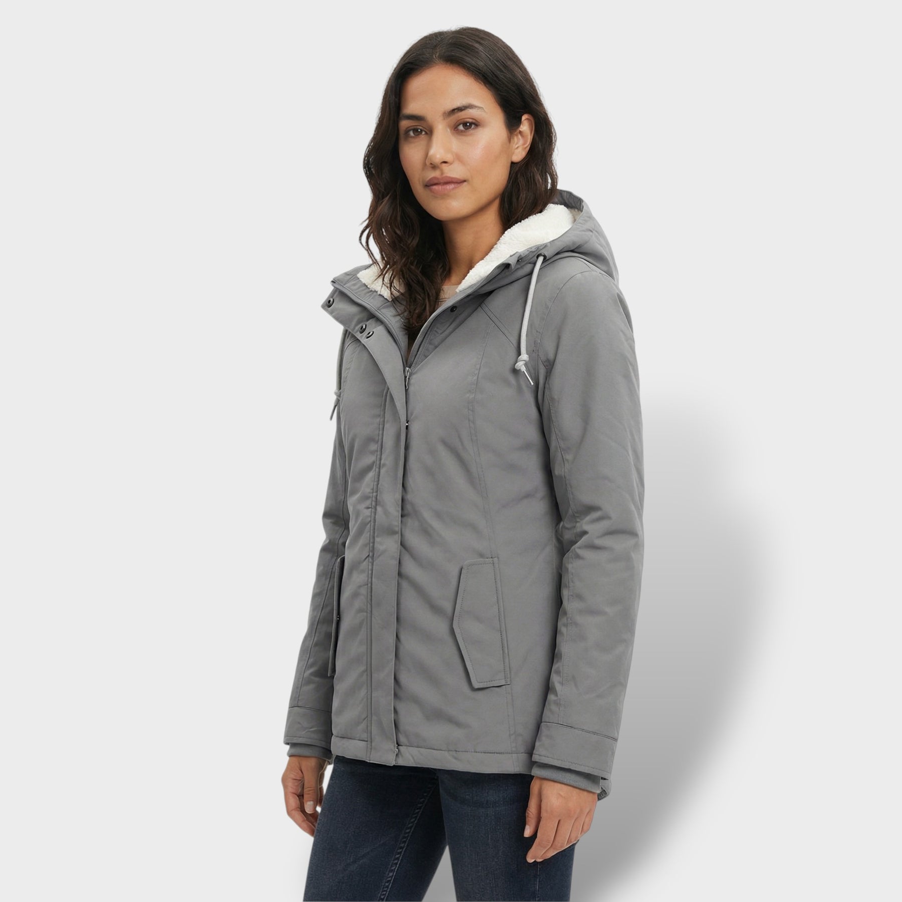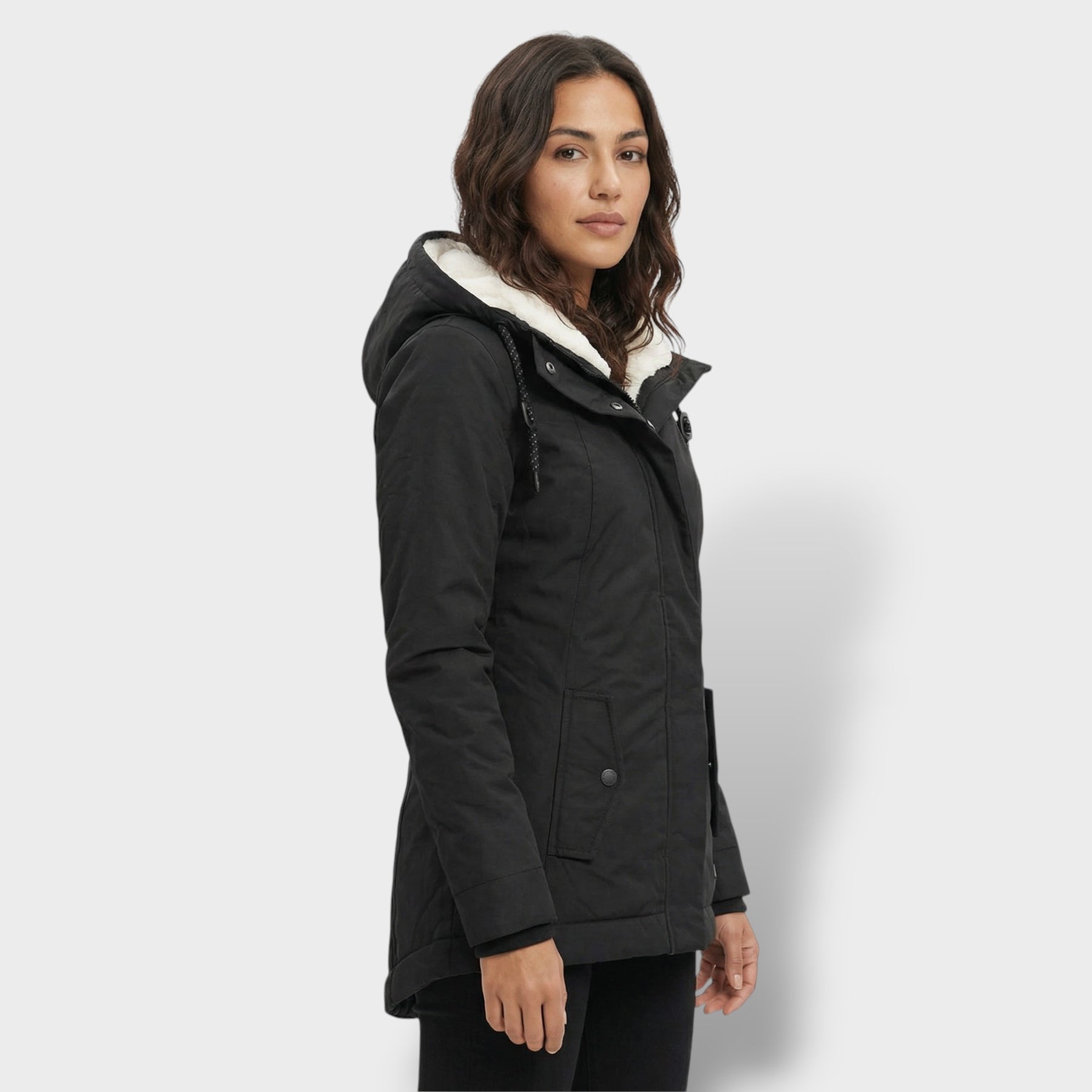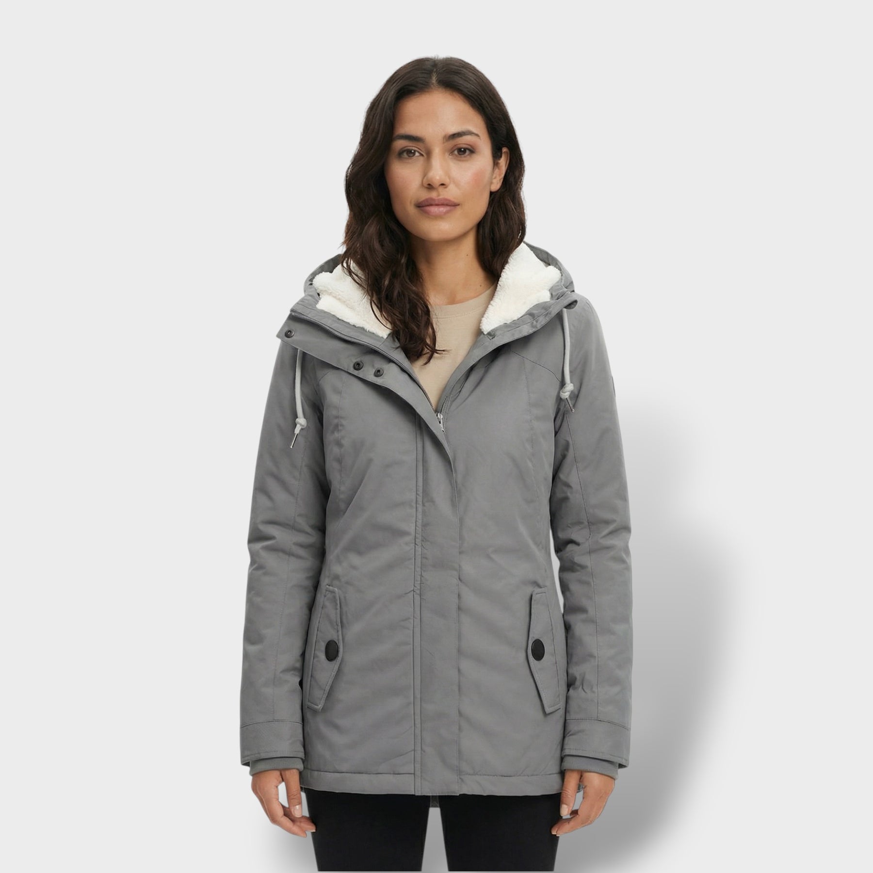 • Capucha con detalle de pelo que aporta estilo y protección frente al frío.