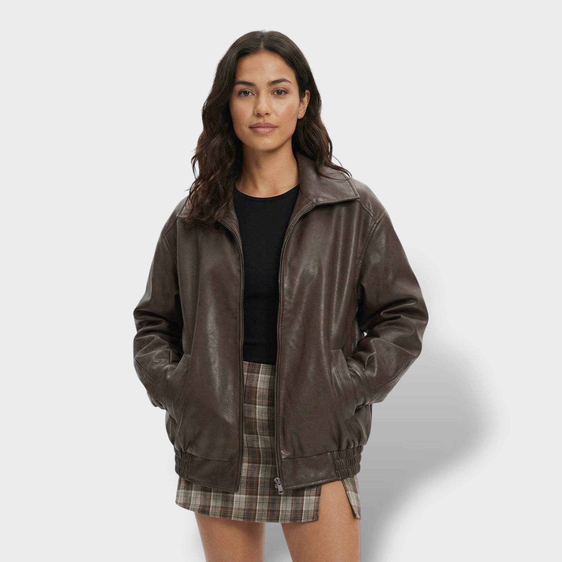 Esta chaqueta oversize está pensada para looks urbanos con un toque moderno y contundente. Su textura lisa, el cuello amplio y el corte recto crean una silueta limpia y con carácter, mientras que el ajuste trasero aporta comodidad y mejor caída. Perfecta para días más frescos, combina igual de bien con vaqueros y tops cortos que con prendas más elegantes.