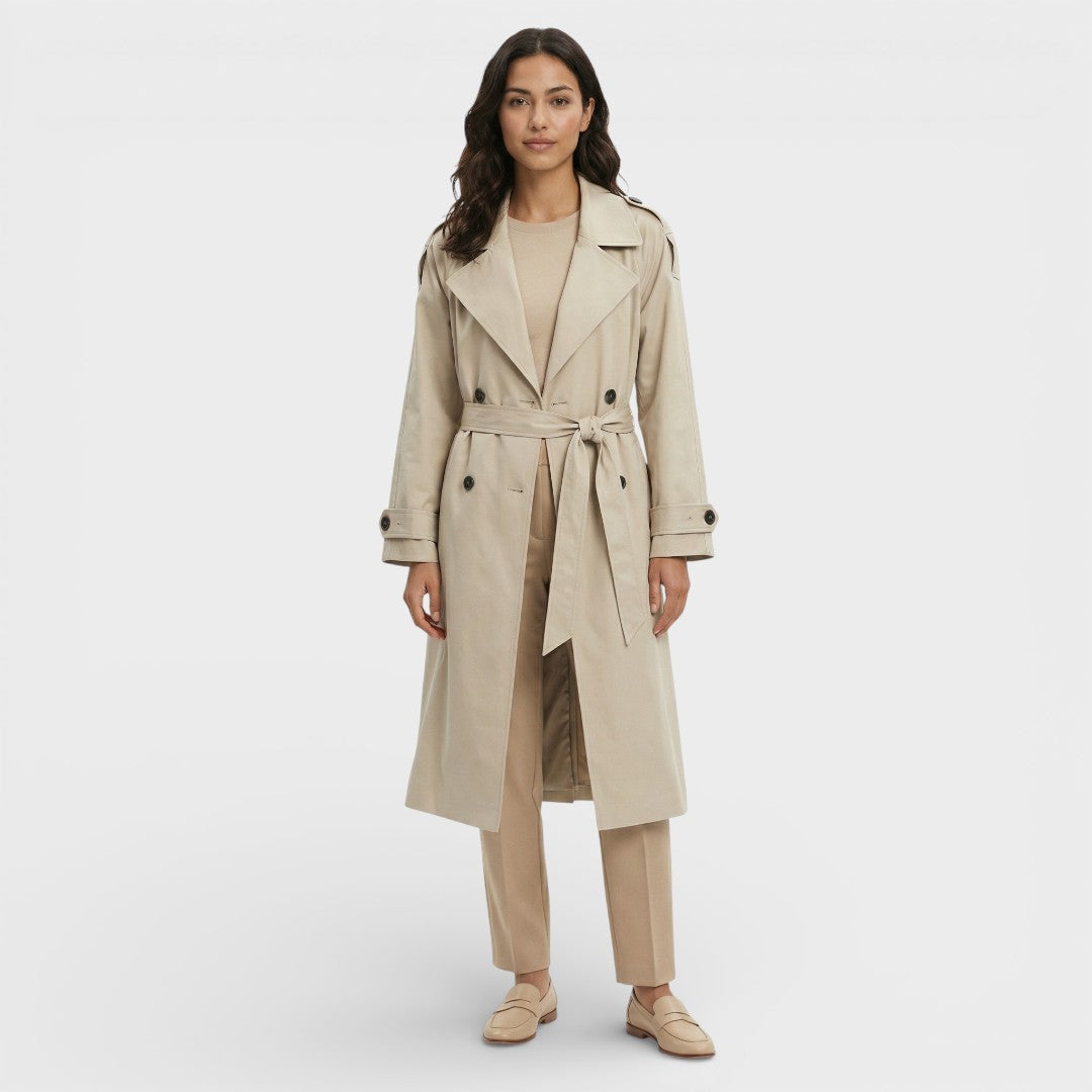 Esta gabardina lisa con cinturón combina un diseño clásico con una silueta refinada que realza cualquier look. El cuello de solapa y la doble botonadura aportan un aire elegante y versátil, ideal para el día a día o para ocasiones más formales, con un acabado cuidado y actual.