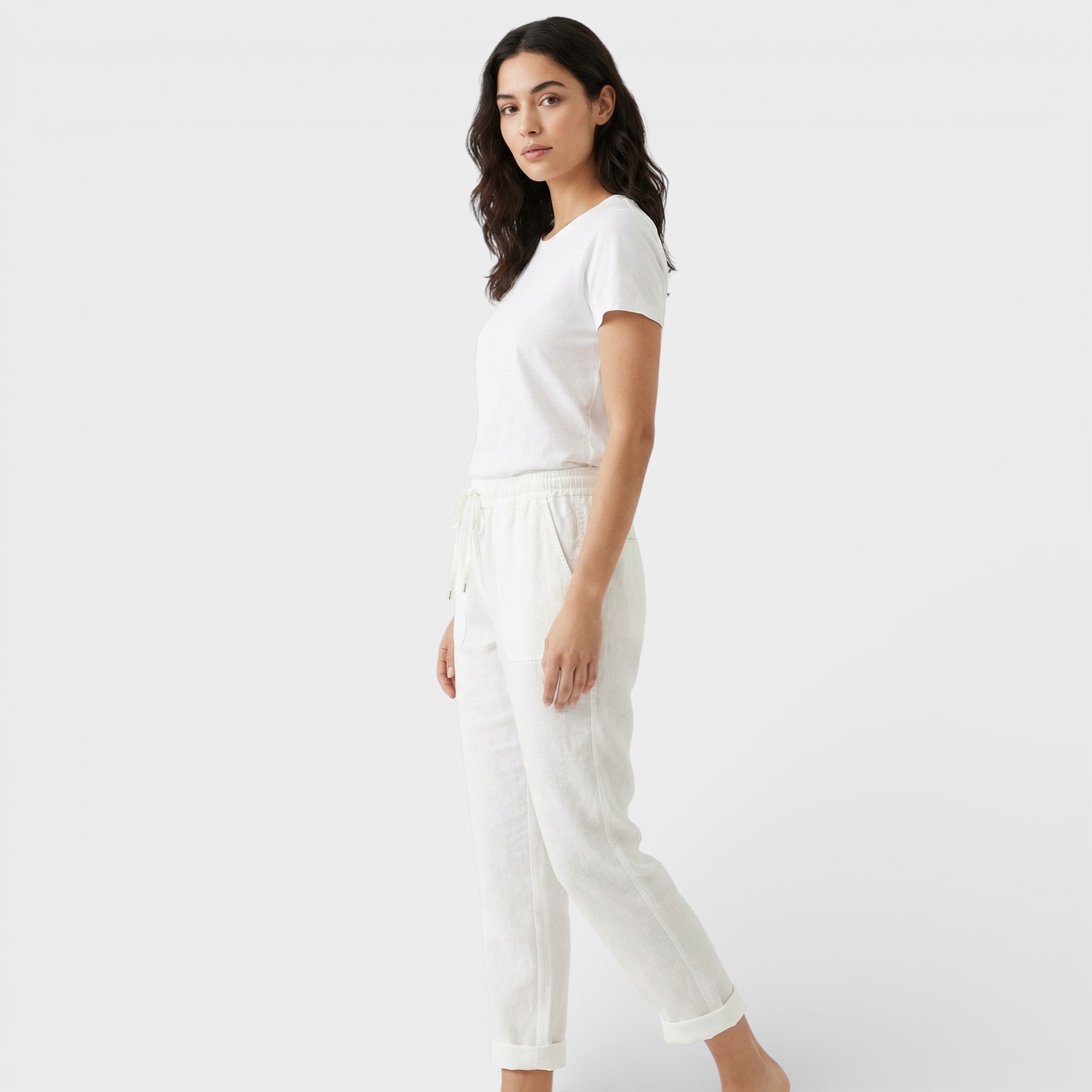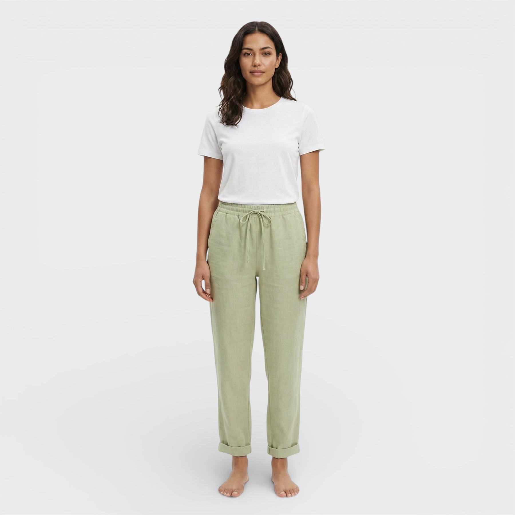Estos pantalones para mujer están diseñados para acompañarte con una sensación ligera y un acabado cuidado. Su silueta relajada aporta libertad de movimiento, mientras que el diseño minimalista encaja con looks diarios o más pulidos. Una opción práctica y elegante para llevar sin pensar demasiado.