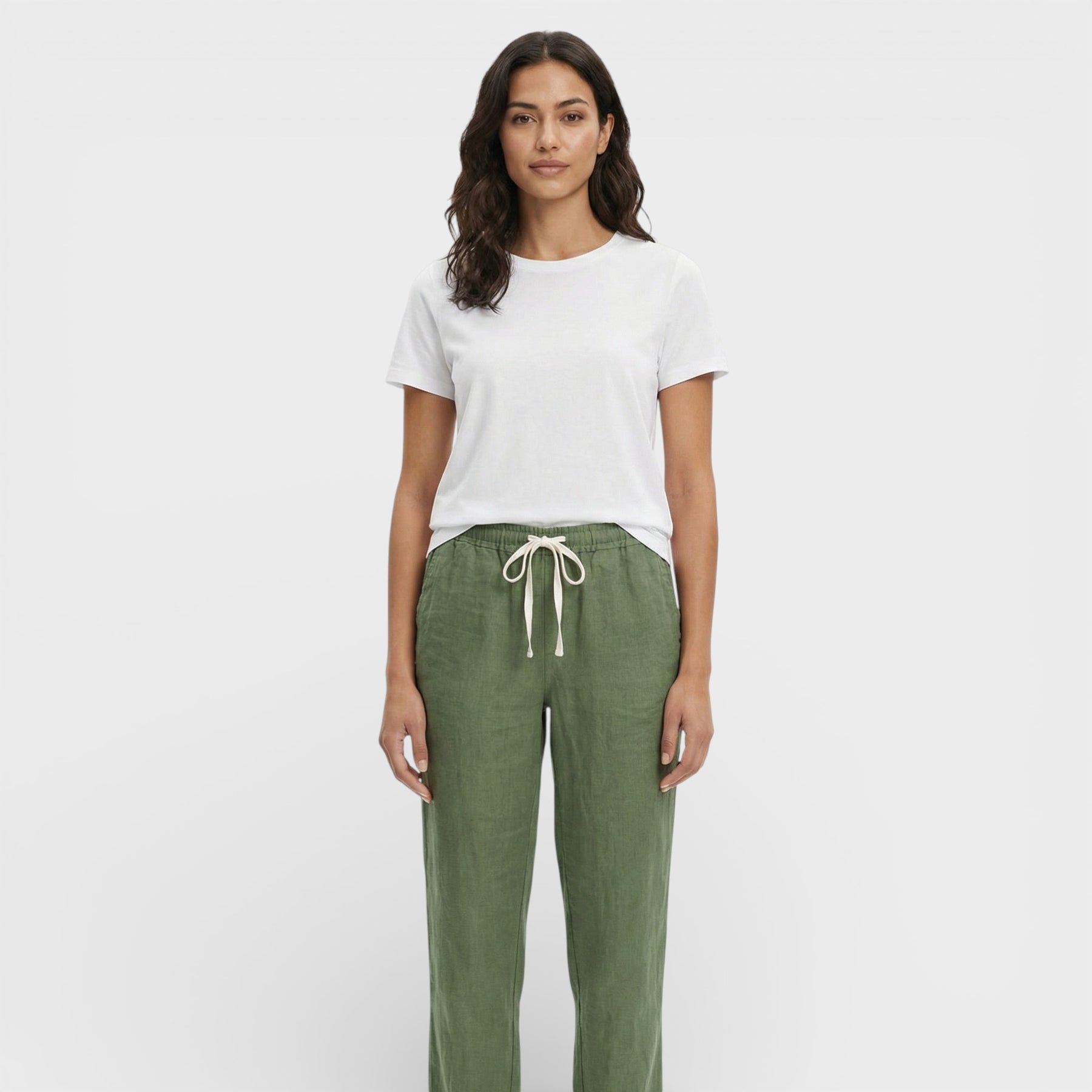Estos pantalones holgados combinan un aire urbano con una sensación de confort ligero, ideales para los días de entretiempo. La cintura elástica con cordón aporta un ajuste práctico y relajado, mientras la silueta amplia crea un look moderno y desenfadado. Perfectos para estilismos casuales con un toque actual.