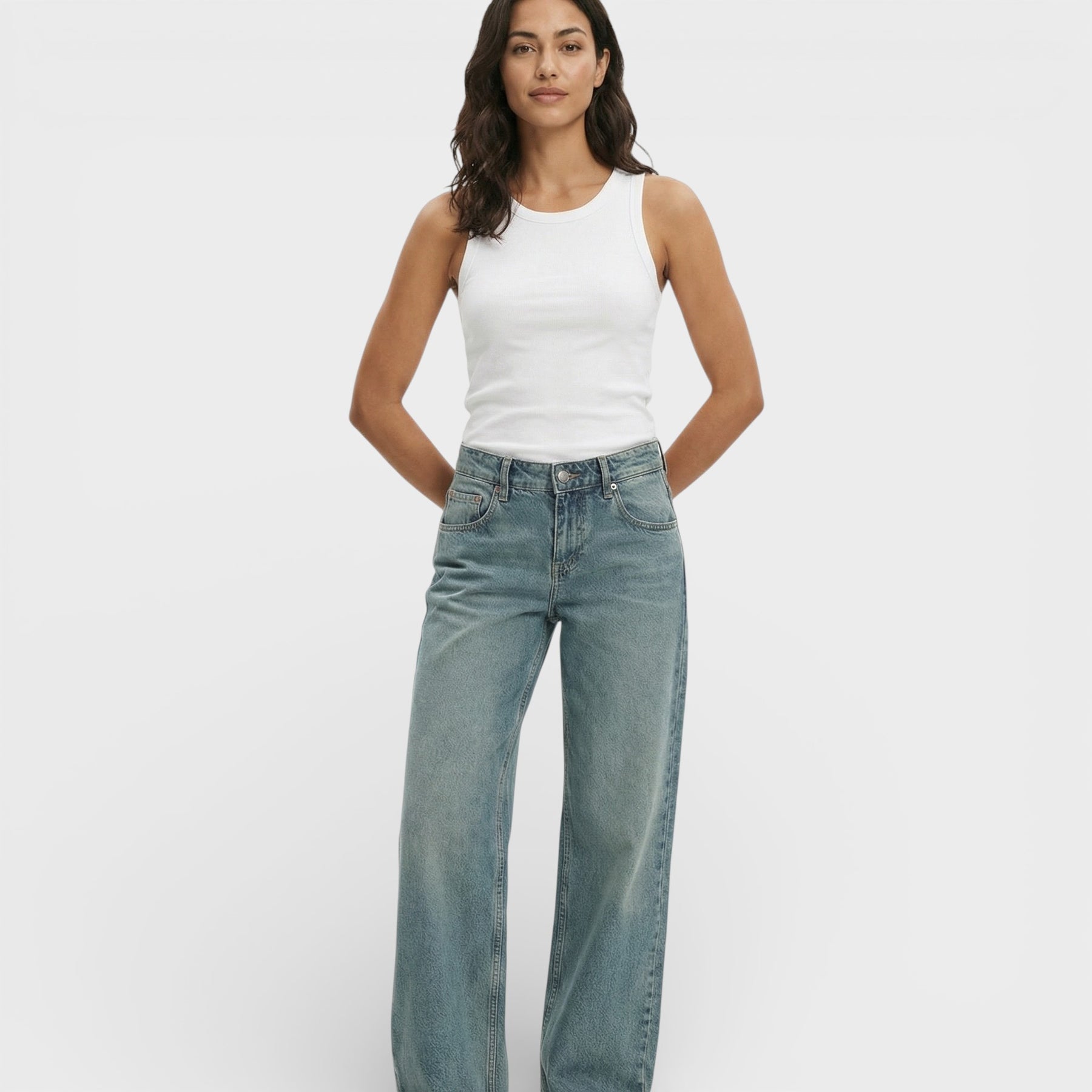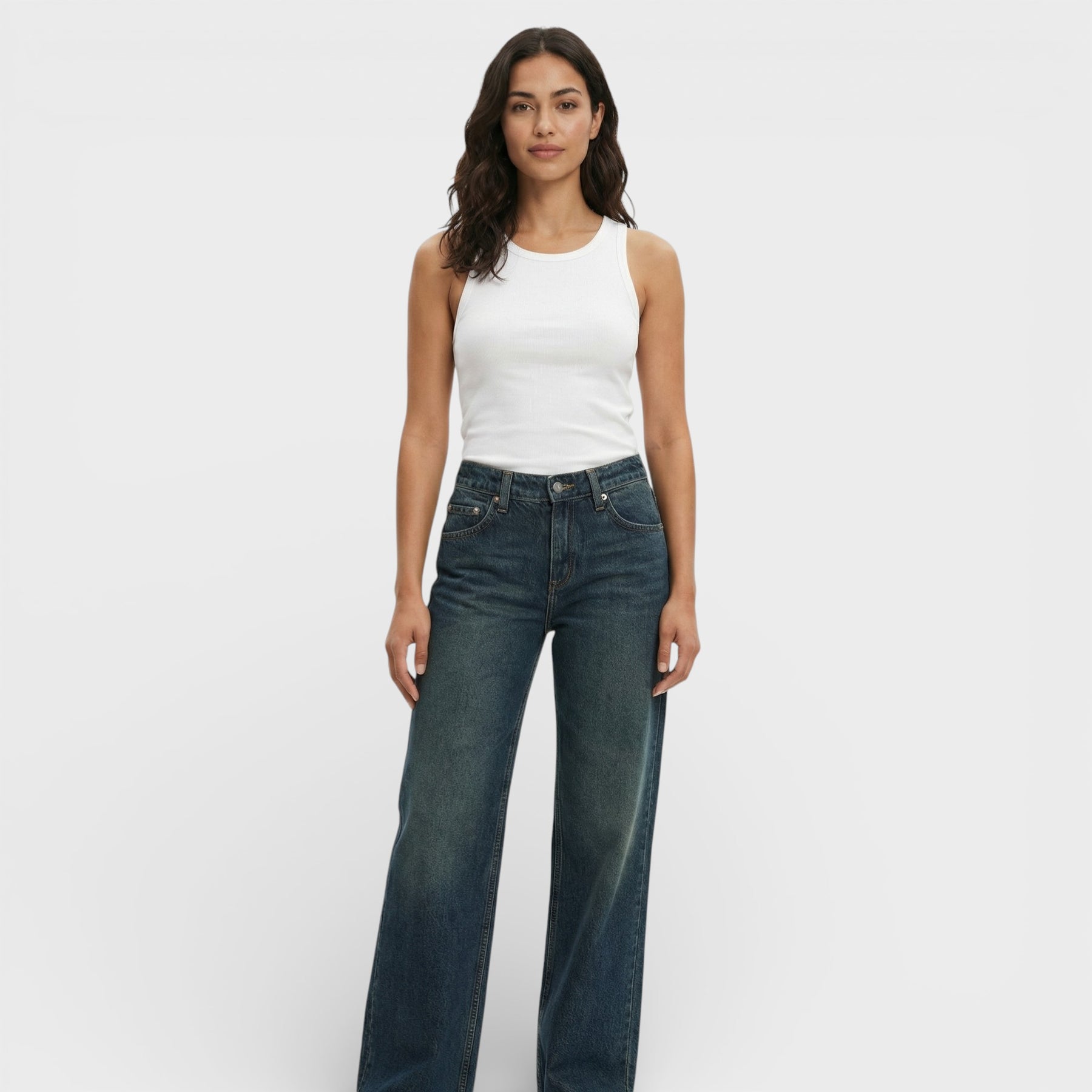 Estos pantalones vaqueros de tiro medio combinan una silueta wide leg muy actual con una comodidad pensada para el día a día. Su corte relajado estiliza sin apretar y se adapta con facilidad a looks de entretiempo e invierno, desde básicos hasta prendas más pulidas. Un fondo de armario versátil en varios lavados clásicos.