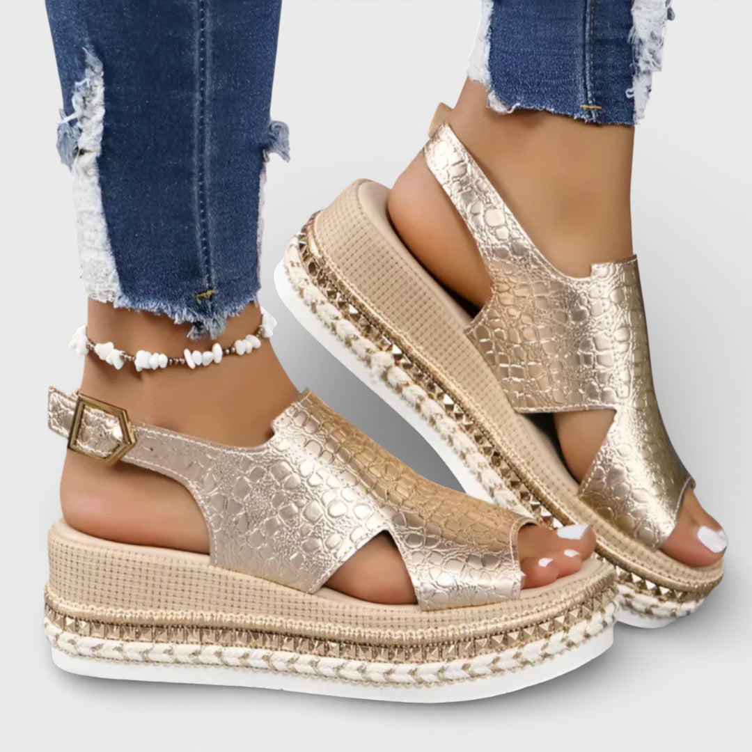 Unas sandalias pensadas para ofrecer una pisada más estable sin renunciar a un look cuidado. La cuña ligera y el diseño limpio las convierten en una opción fácil para el día a día y planes más arreglados.