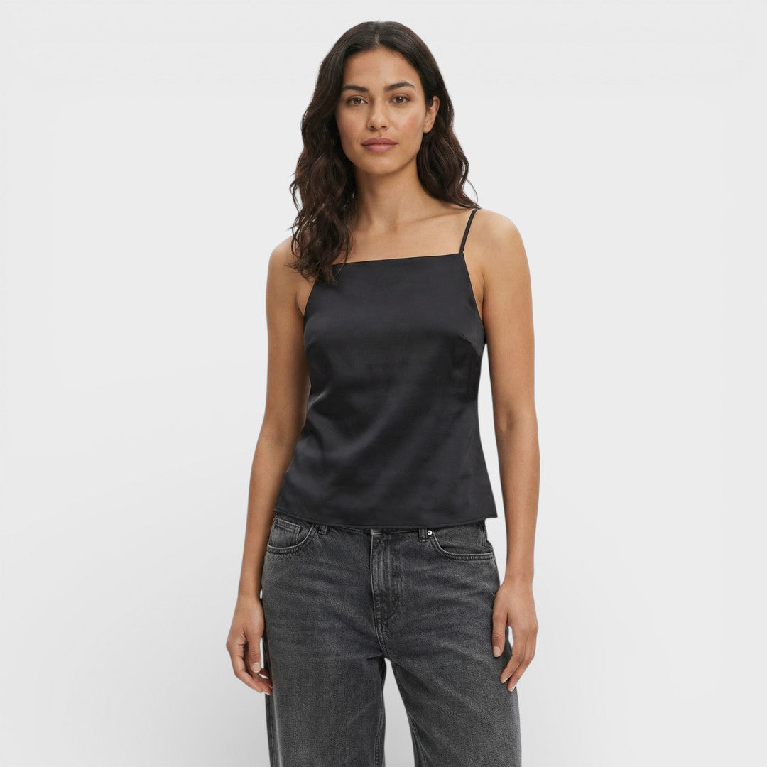Un top de tirantes finos con espalda descubierta, perfecto para elevar tus looks esta temporada con un toque limpio y sofisticado. Funciona igual de bien con denim como con una falda satinada para un efecto noche sin esfuerzo.