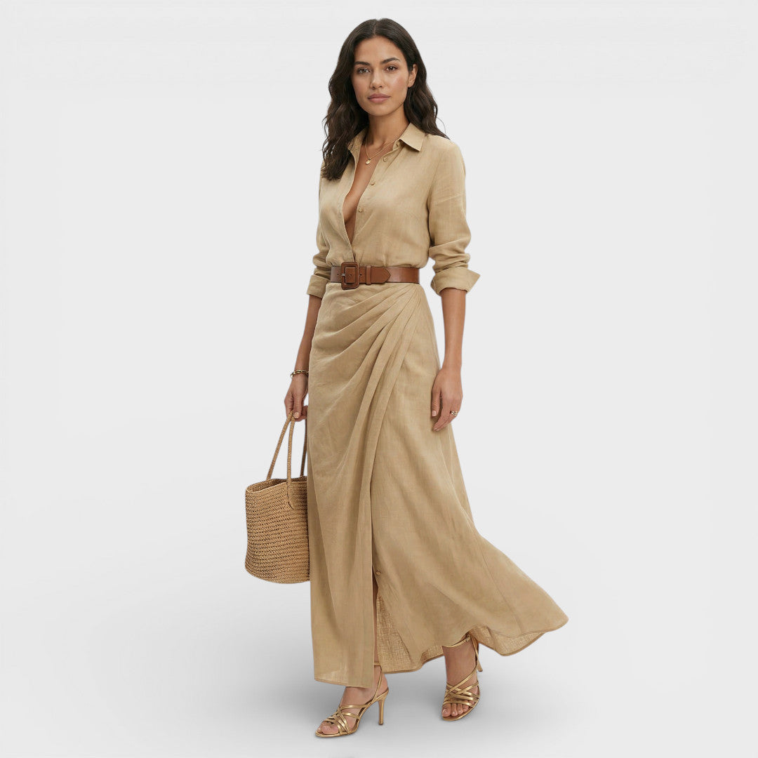 Vestido Camisero Largo Mujer Elegante
