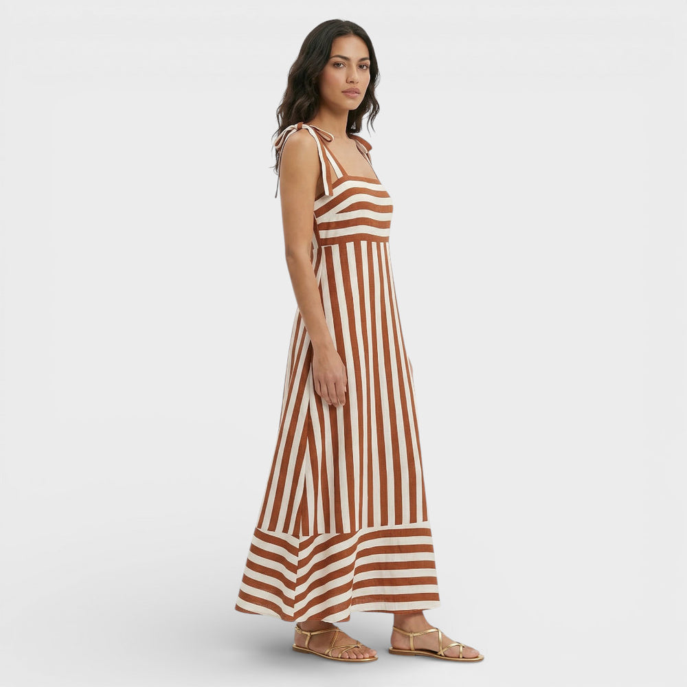 Vestido Midi Algodón Lino Mujer