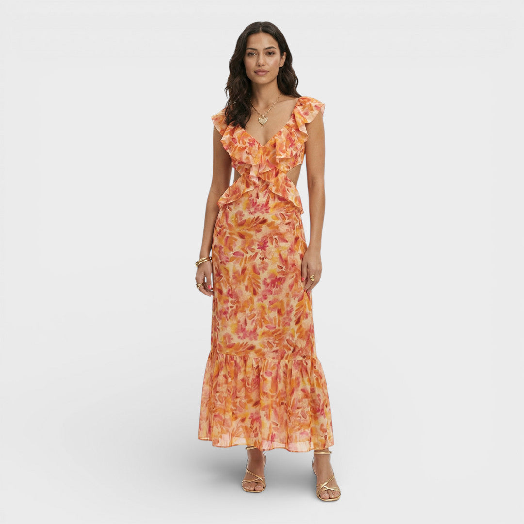 Vestido Largo Mujer Volantes Estampado