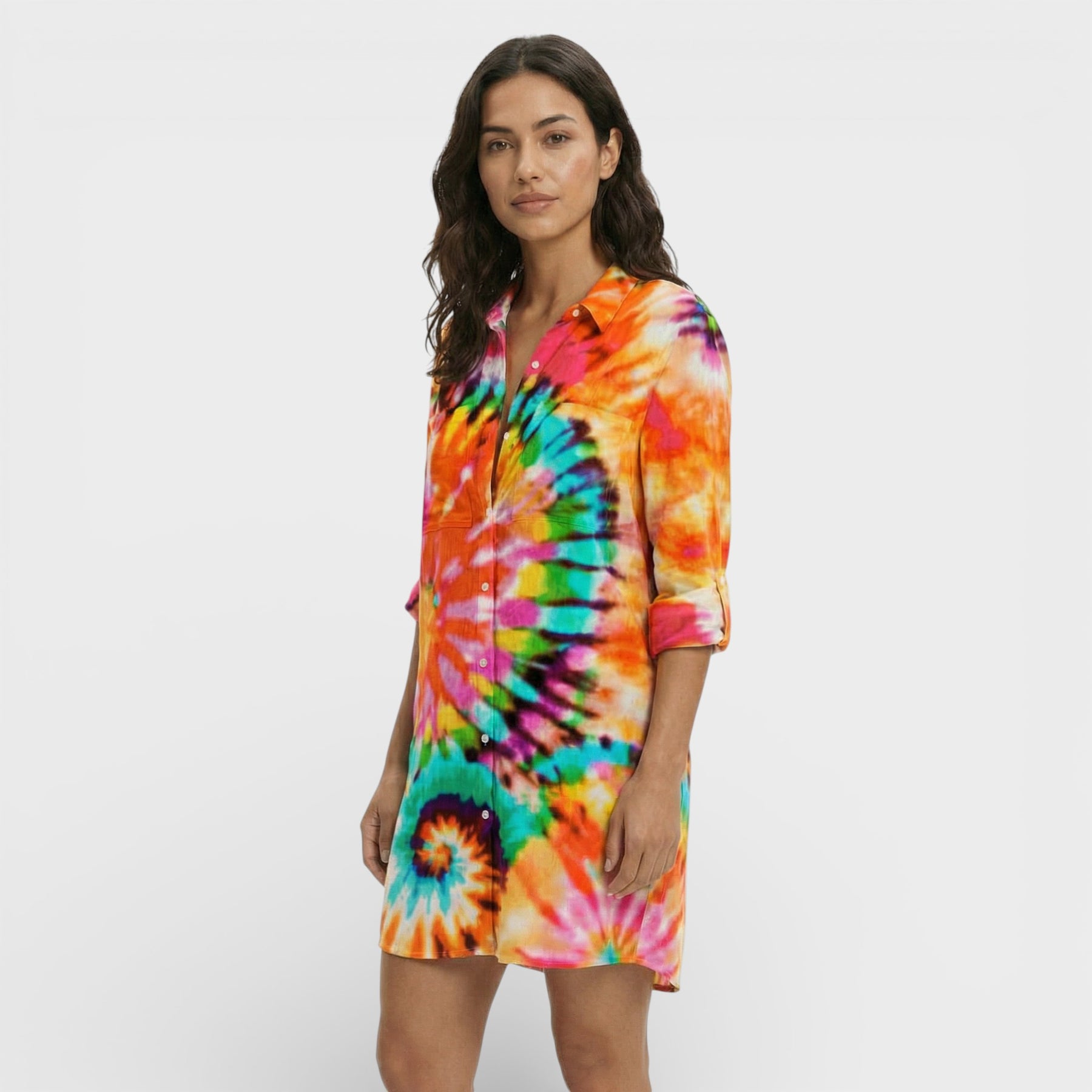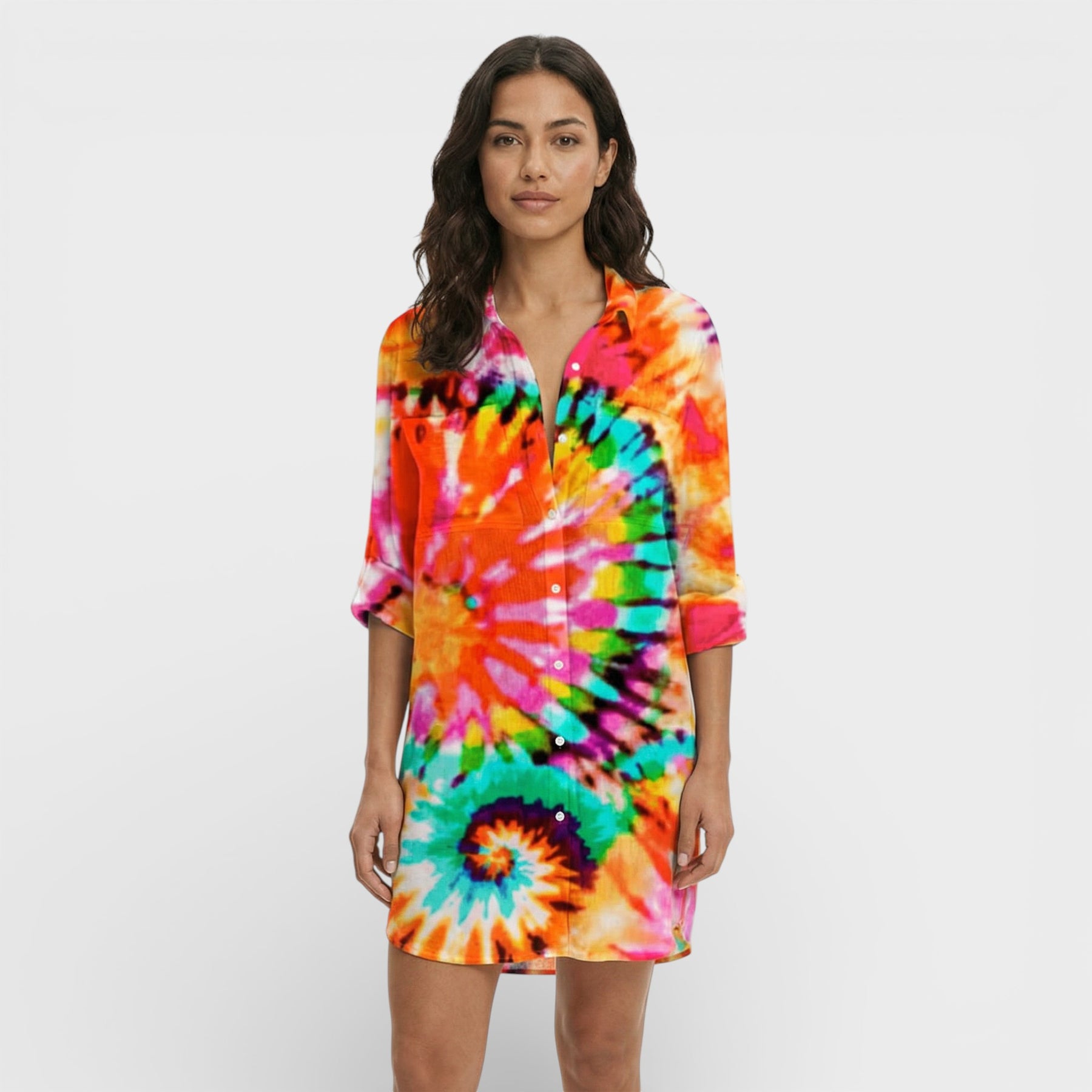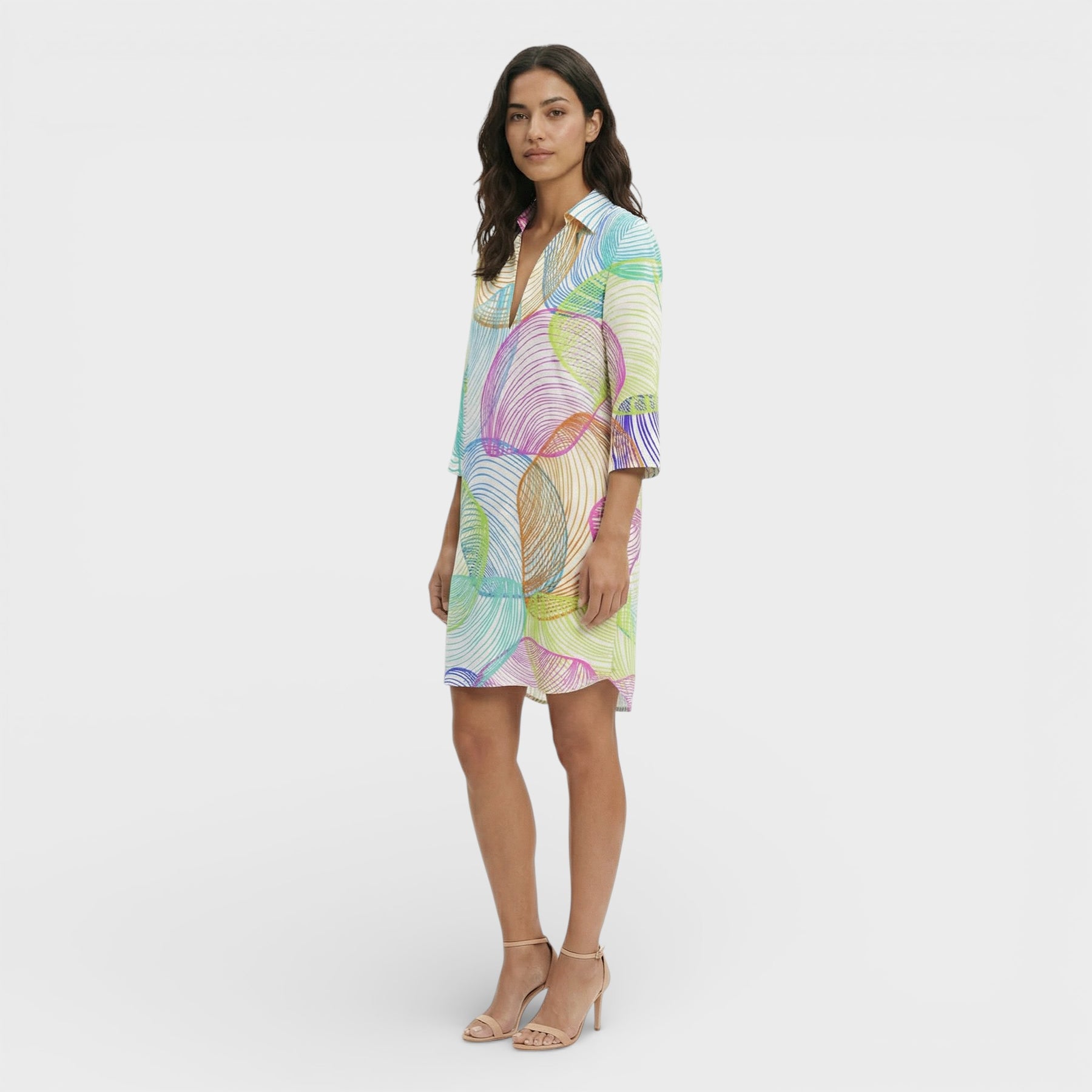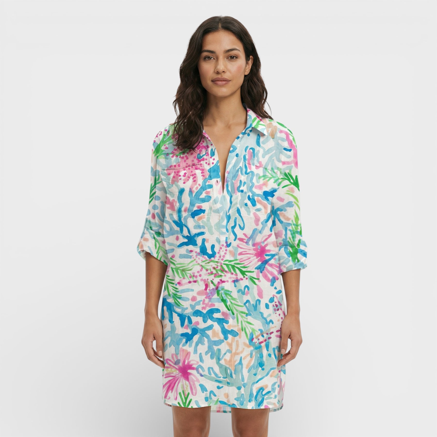 Este vestido camisero largo aporta un aire luminoso y femenino con una silueta en línea A que cae con suavidad y favorece sin esfuerzo. El cuello clásico y el cierre de botones mantienen un acabado pulido, mientras los bolsillos añaden un punto práctico para el día a día. Una pieza versátil, perfecta para planes al aire libre o looks relajados con un toque cuidado.