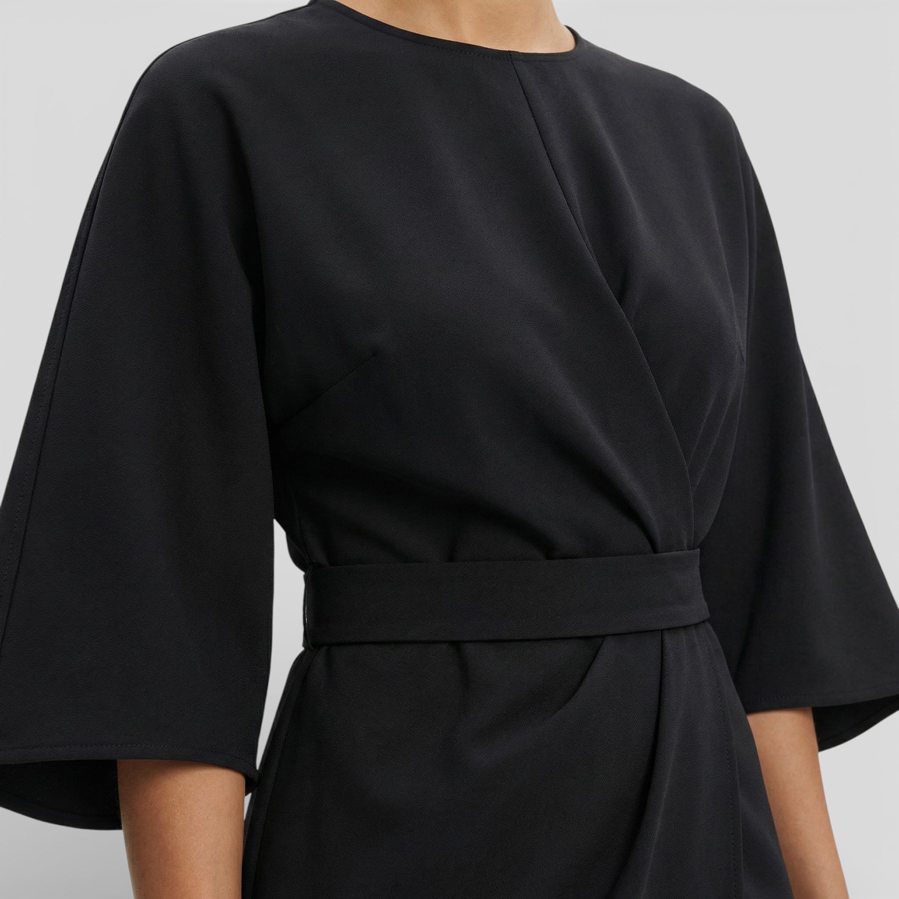 • Cinturón ajustable que realza la cintura y estiliza la figura.