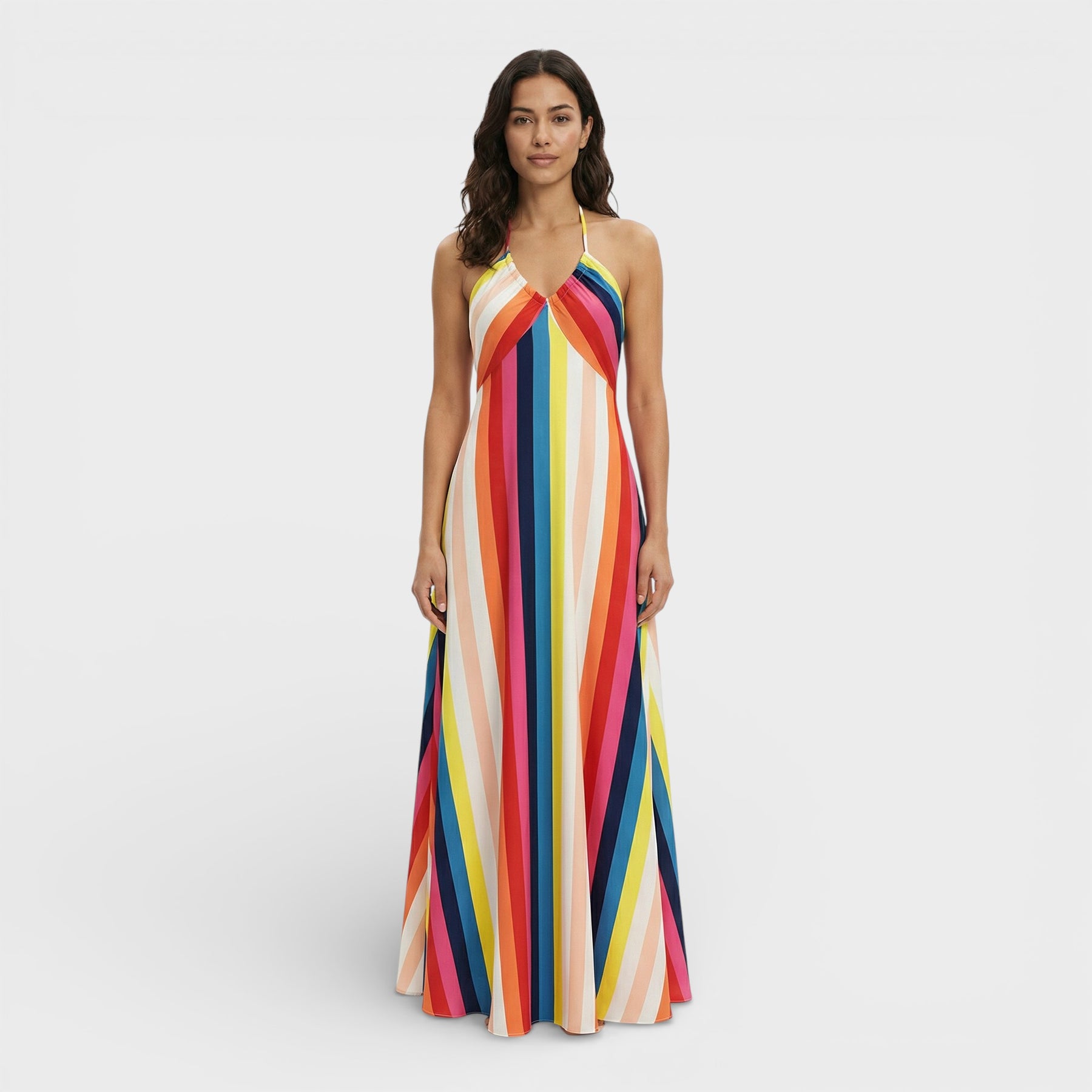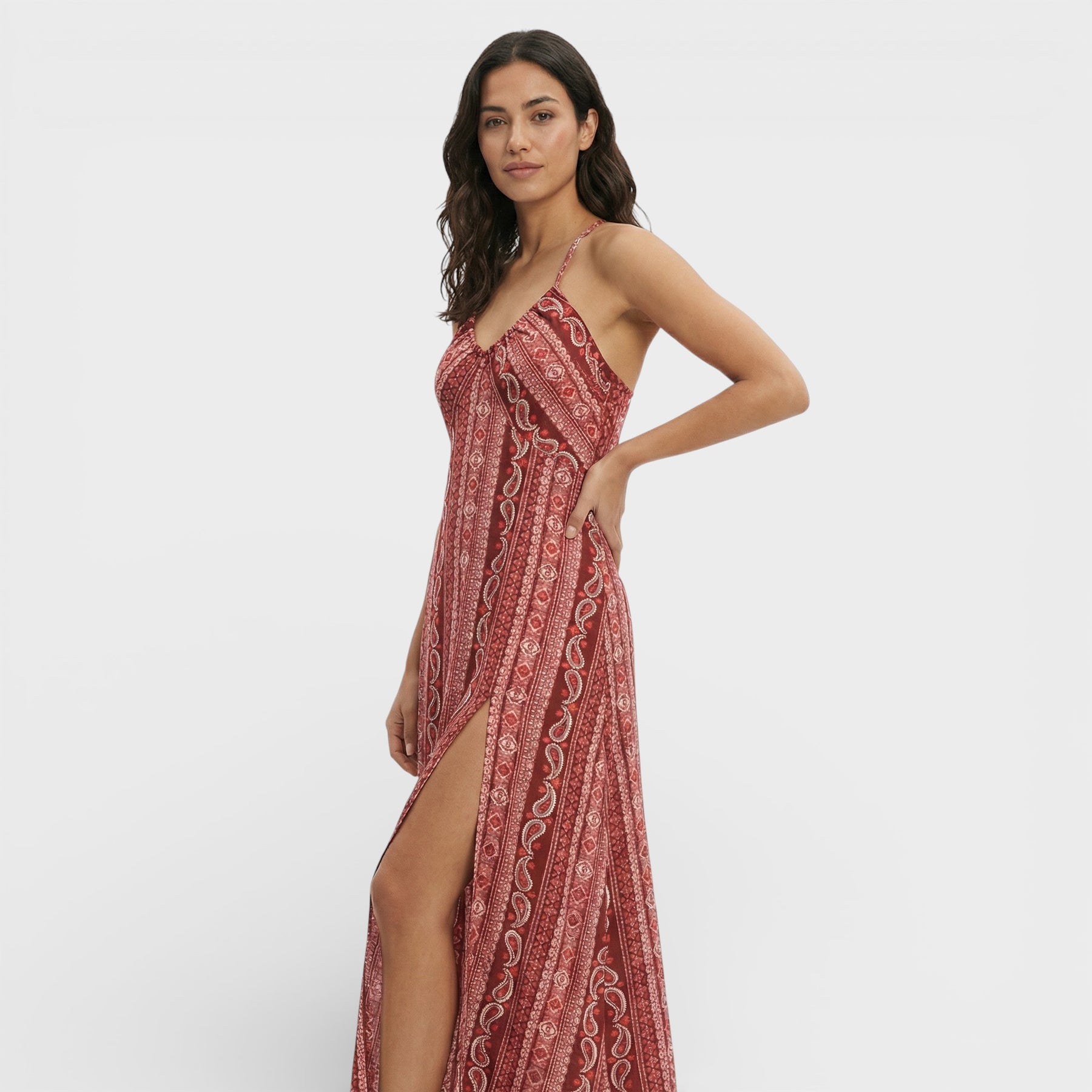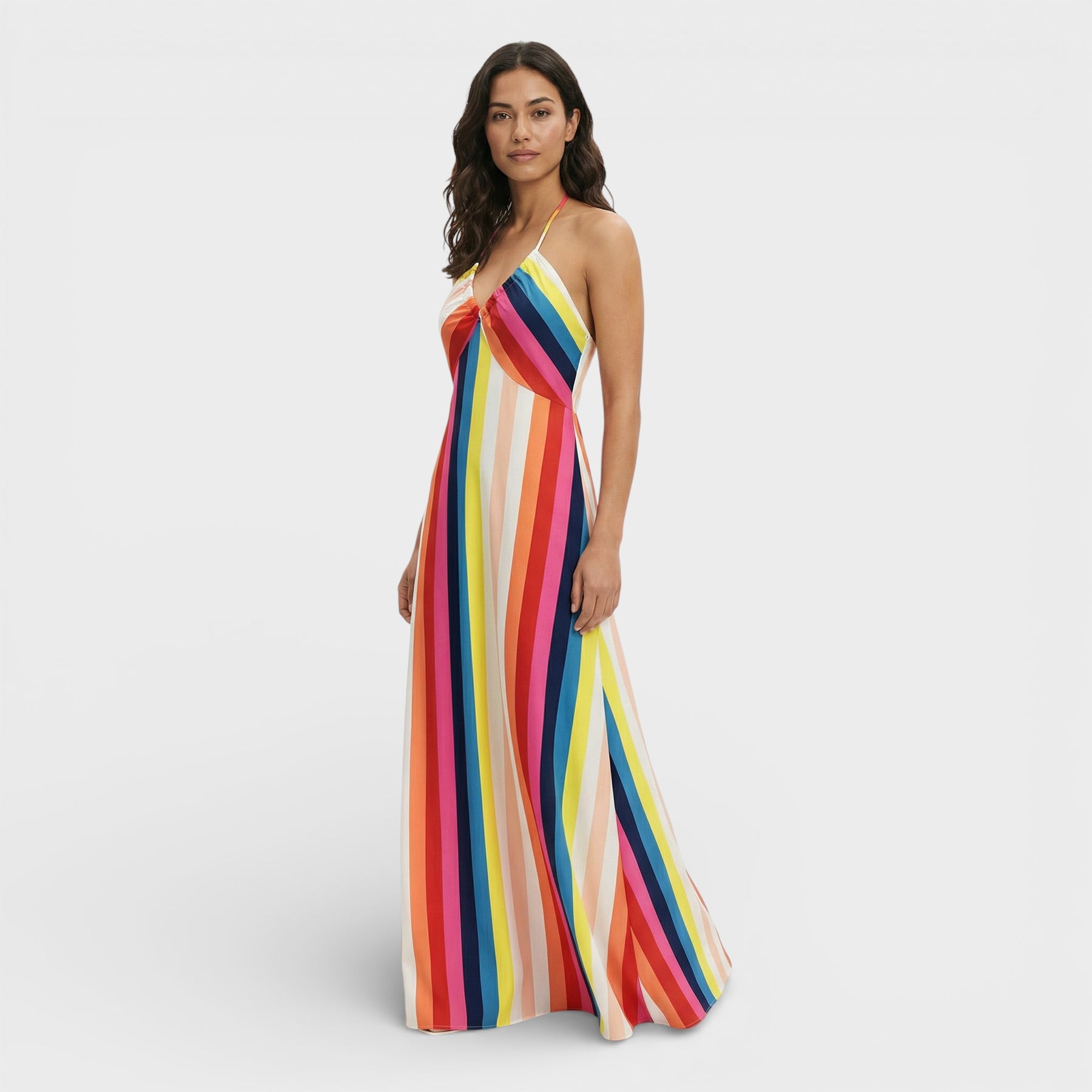 Este vestido largo con estampado étnico destaca por su diseño fluido y una espalda descubierta que aporta un aire femenino y desenfadado. Los volantes añaden ligereza y dinamismo, creando una silueta favorecedora y cómoda. Una pieza con personalidad, ideal para looks relajados con un toque actual.