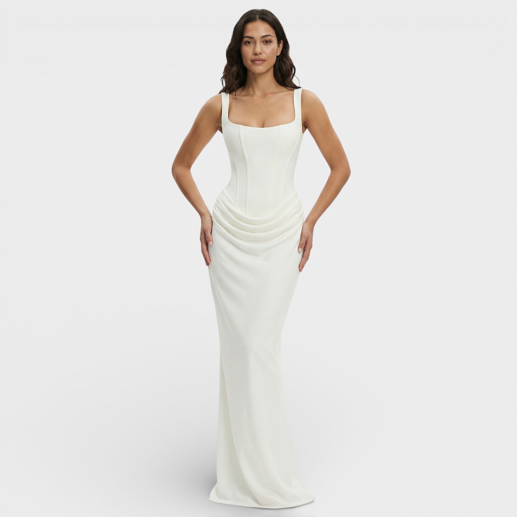 Este vestido largo para mujer combina una silueta estilizada con detalles modernos que realzan la figura de forma elegante. Su diseño sin mangas con cuello cuadrado y espalda descubierta aporta un equilibrio perfecto entre sofisticación y atractivo, ideal para eventos nocturnos, fiestas o looks de invitada con un aire más atrevido. El tejido acanalado se adapta suavemente al cuerpo, creando una presencia refinada y actual.