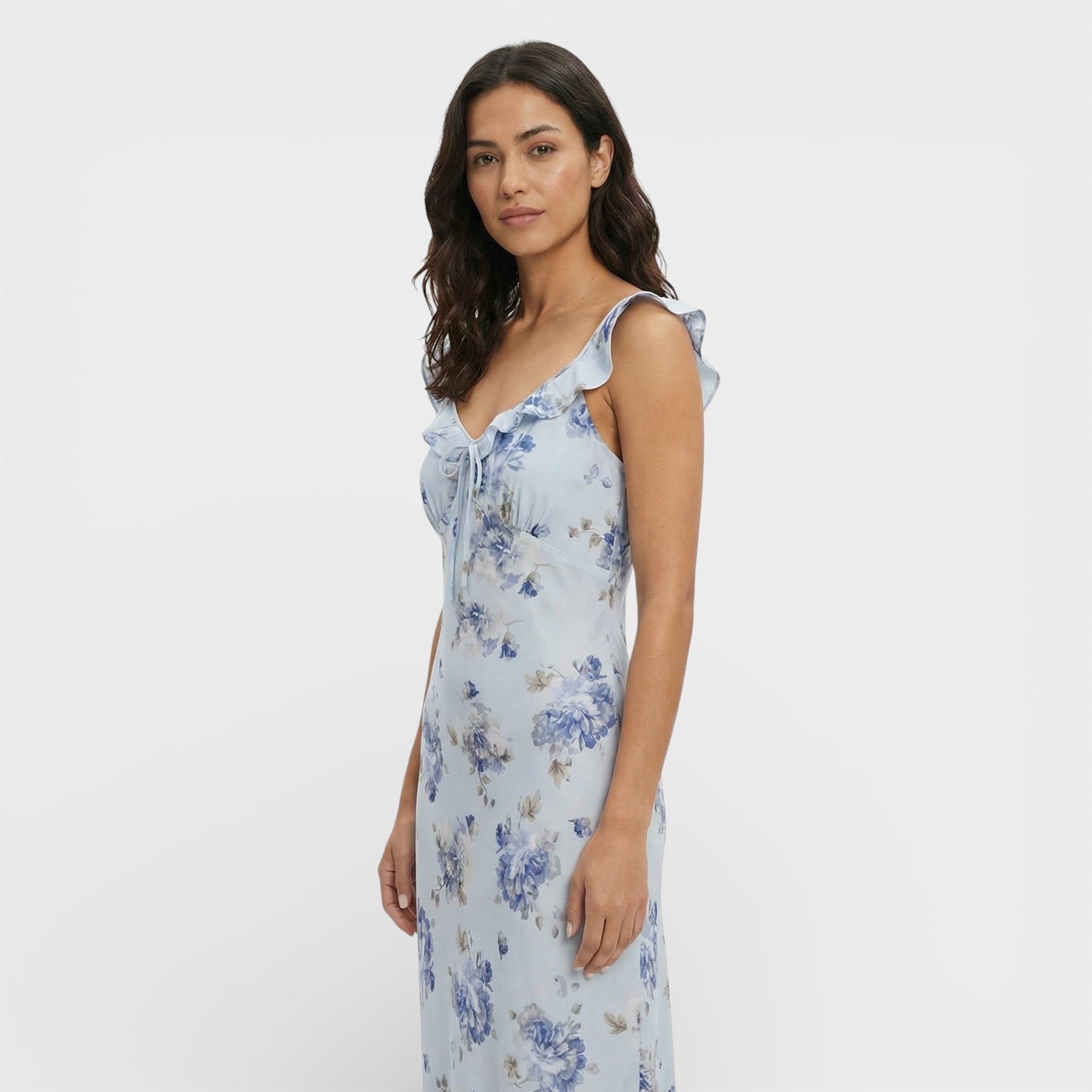 Este vestido maxi floral es la definición de feminidad ligera y sensual para los días de sol. Su escote profundo y la espalda descubierta crean una silueta elegante y fresca, perfecta para vacaciones, planes de playa o escapadas estivales. El estampado floral aporta un aire romántico y luminoso que fluye con cada movimiento.