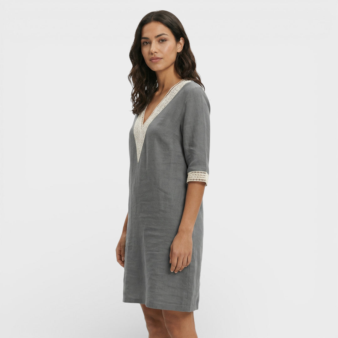 Este vestido midi ofrece una elegancia natural y una sensación fresca al llevarlo. Su silueta relajada y el escote clásico crean un look pulido y fácil de combinar, perfecto para planes de día o cenas informales. Aporta un aire sofisticado sin esfuerzo, adaptándose con suavidad a cada movimiento.