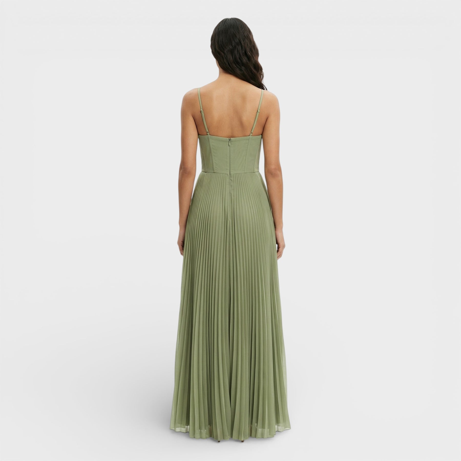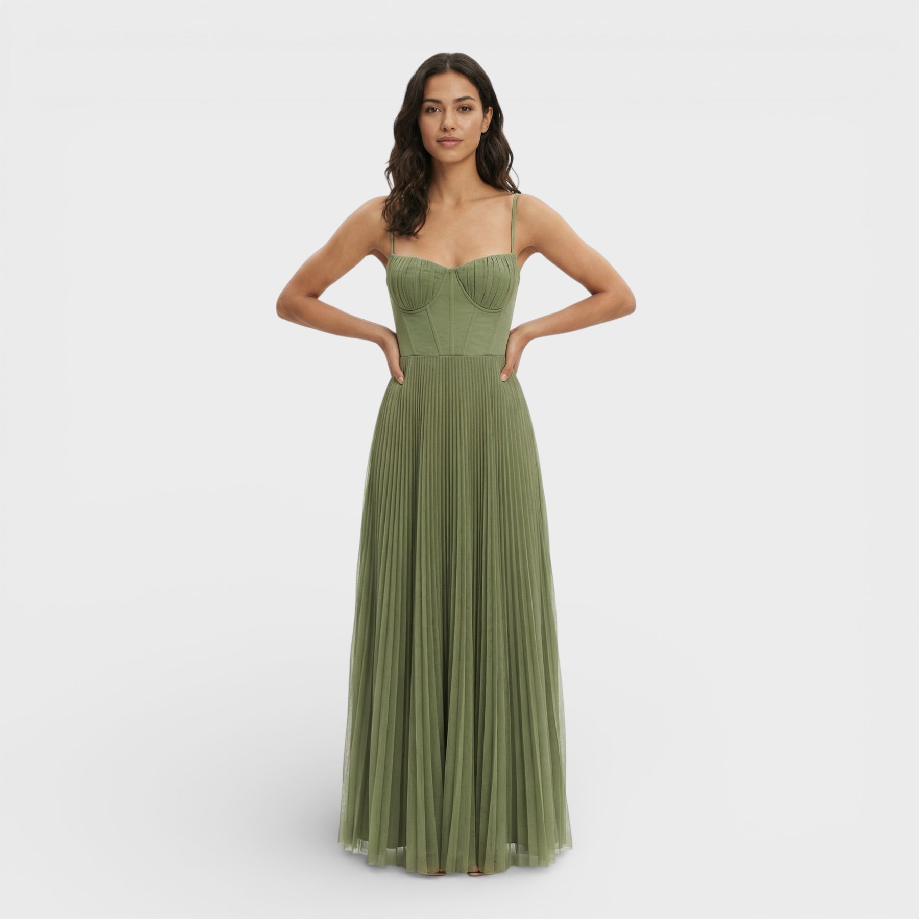 Este vestido midi plisado combina una silueta fit & flare con un acabado ligero y femenino que estiliza sin esfuerzo. La cintura definida realza la figura, mientras la falda con vuelo aporta movimiento y un aire sofisticado. Ideal para celebraciones, cenas especiales o eventos donde buscas un look refinado.